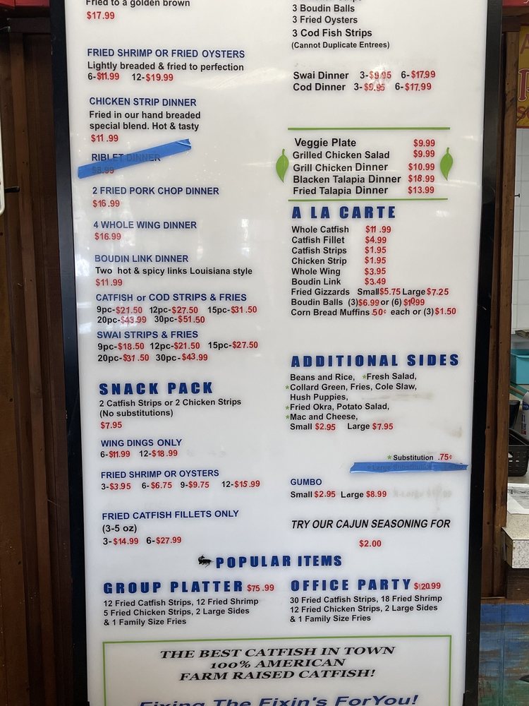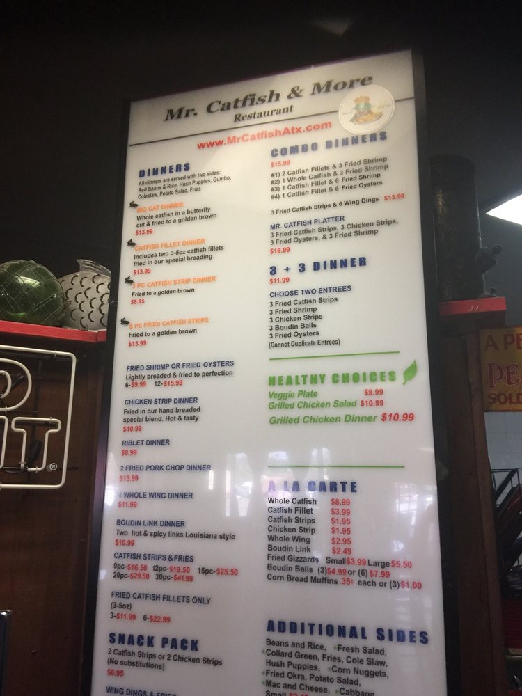 Mr Catfish, located in Austin, TX, is a seafood restaurant known for its impeccable fried catfish and shrimp combos, hush puppies, and delicious coleslaw. The menu offers a variety of southern Cajun comfort food options that are consistently flavorful and satisfying. Customers praise the restaurant for its friendly service, clean atmosphere, and excellent happy hour specials. The establishment is wheelchair accessible, offers outdoor seating, and has a full bar with TV for entertainment. With a focus on quality, quantity, and taste, Mr Catfish has become a favorite among locals and visitors alike. Whether you're craving exceptional seafood or looking for a memorable dining experience, Mr Catfish delivers on all fronts. Don't miss out on this hidden gem in East Austin.
